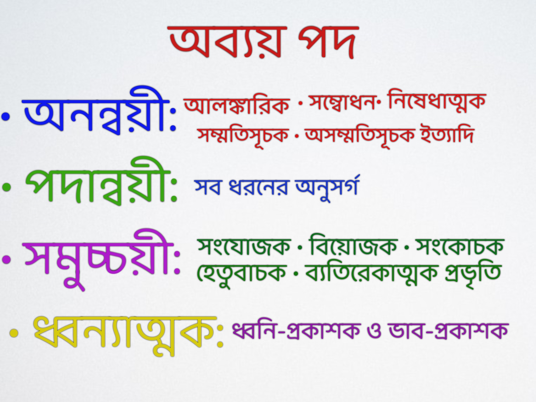 • অব্যয় পদের সংজ্ঞা ও ধারণা